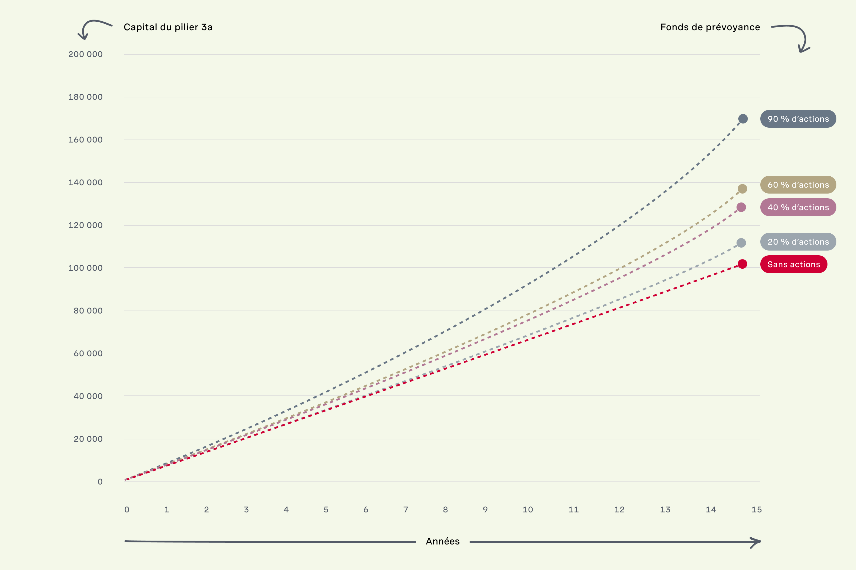 Les fonds de prévoyance offrent de bonnes perspectives de rendement dans le 3e pilier et permettent d’épargner davantage qu’avec un compte Épargne 3. Sachez que plus vous investissez sur le long terme et plus la part d’actions est élevée, plus l’écart de rendement entre ces deux options est important.