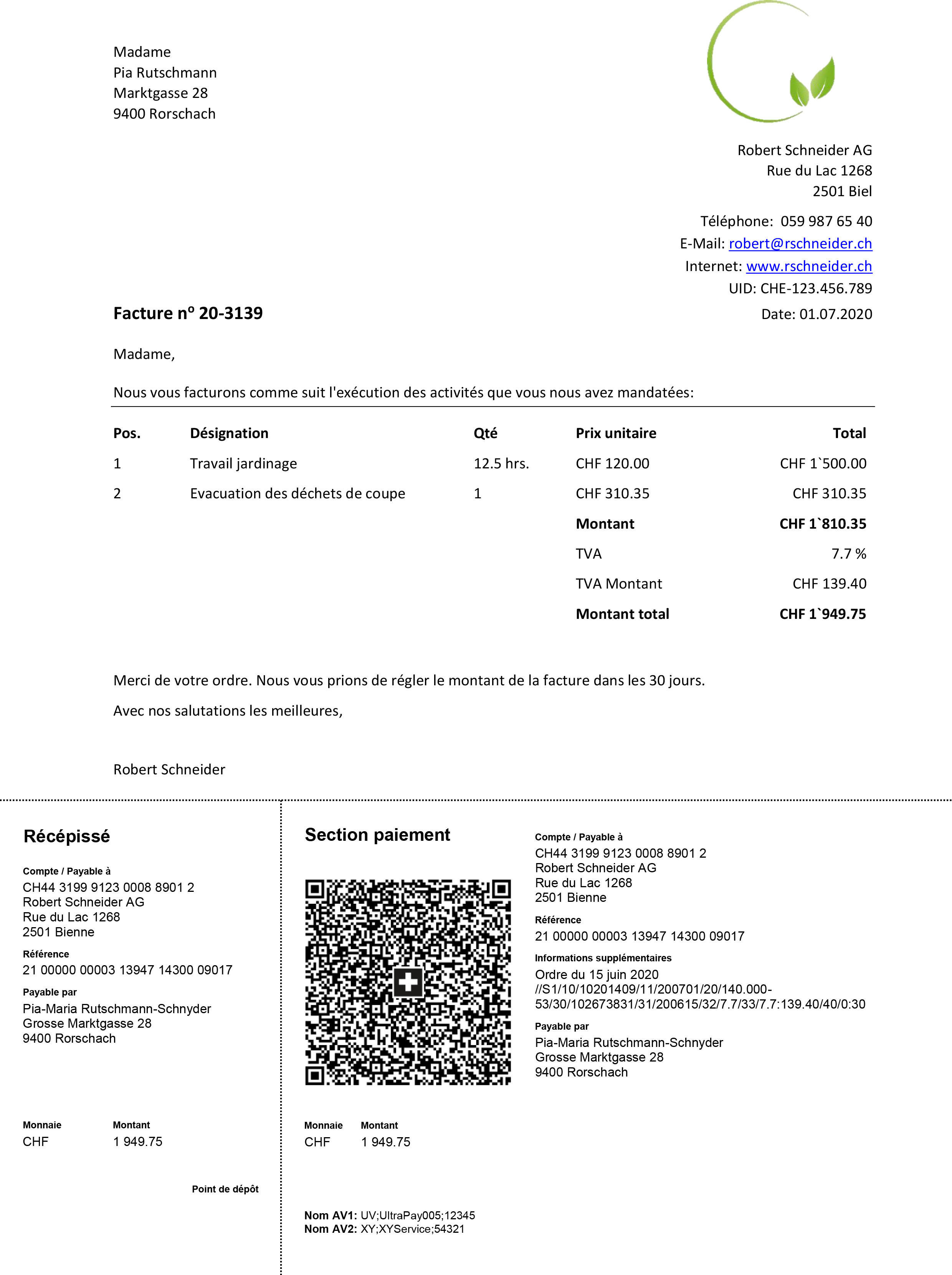 Si vous imprimez vous-même vos factures, vous devez vérifier que votre logiciel est également en mesure d’établir des QR-factures. Pour ce faire, veuillez contacter le fournisseur de logiciel concerné ou votre informaticien. Si vous utilisez un logiciel développé en interne pour l’émission de factures, vous devez prendre les dispositions nécessaires.