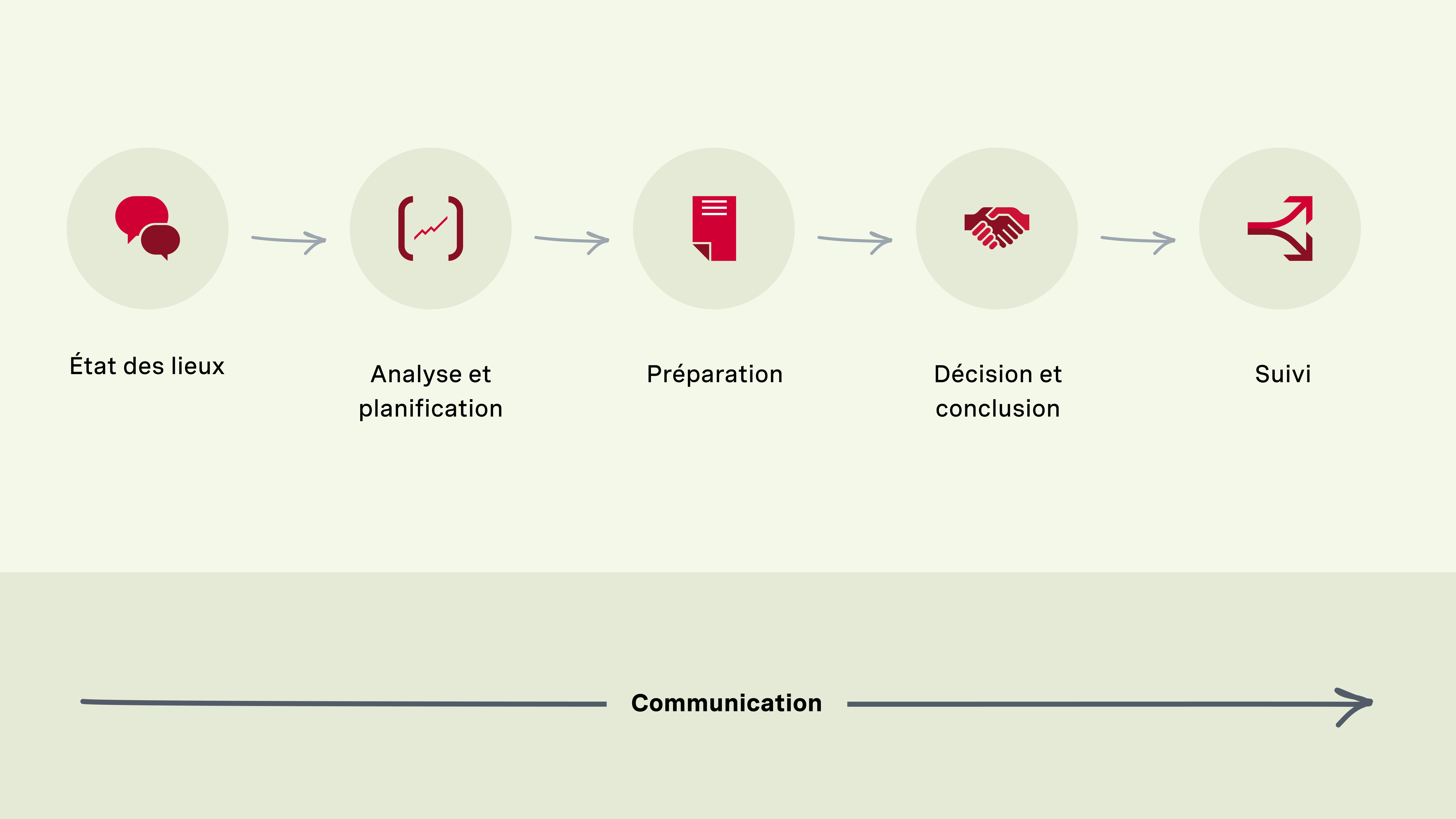 Votre coach financier vous aide à structurer l’ensemble de votre fortune, tandis que votre spécialiste en transmission d’entreprise vous apporte son soutien durant les nouvelles discussions avec les membres de votre famille ou de votre personnel, ainsi que dans la mise en œuvre de votre feuille de route.