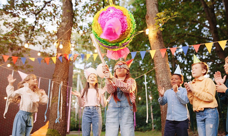 • Piñata: cette coutume d’Amérique centrale a depuis longtemps fait des adeptes chez nous aussi. La piñata est une figurine colorée en papier mâché remplie de friandises ou de petits cadeaux. Les enfants doivent la frapper avec un bâton pour la briser et récupérer les petites surprises qu’elle contient.