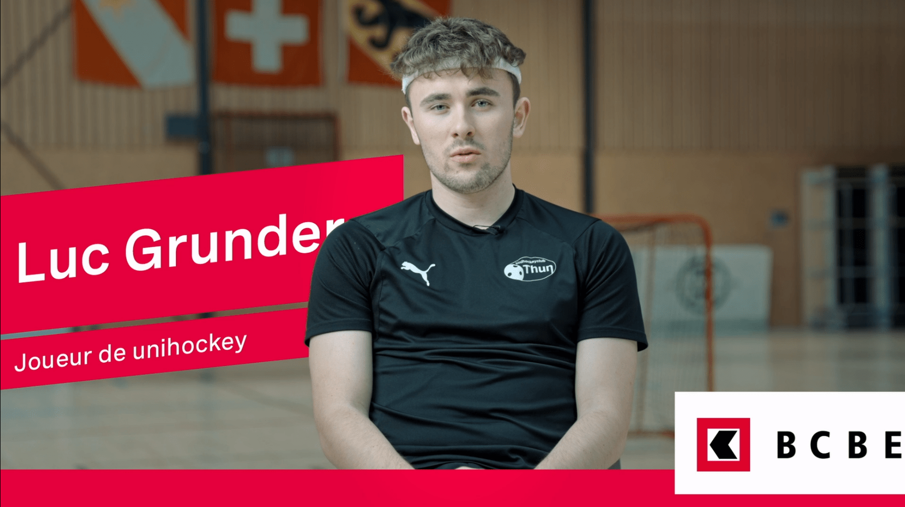 Luc Grunder est à la fois sportif de haut niveau et collaborateur de la BCBE. Passionné par son sport, ce joueur de unihockey a remporté le championnat suisse avec le Floorball Köniz dans la catégorie des M18, en 2019. Son travail à temps partiel (80%) à la banque lui permet de poursuivre ses objectifs sportifs en parallèle.