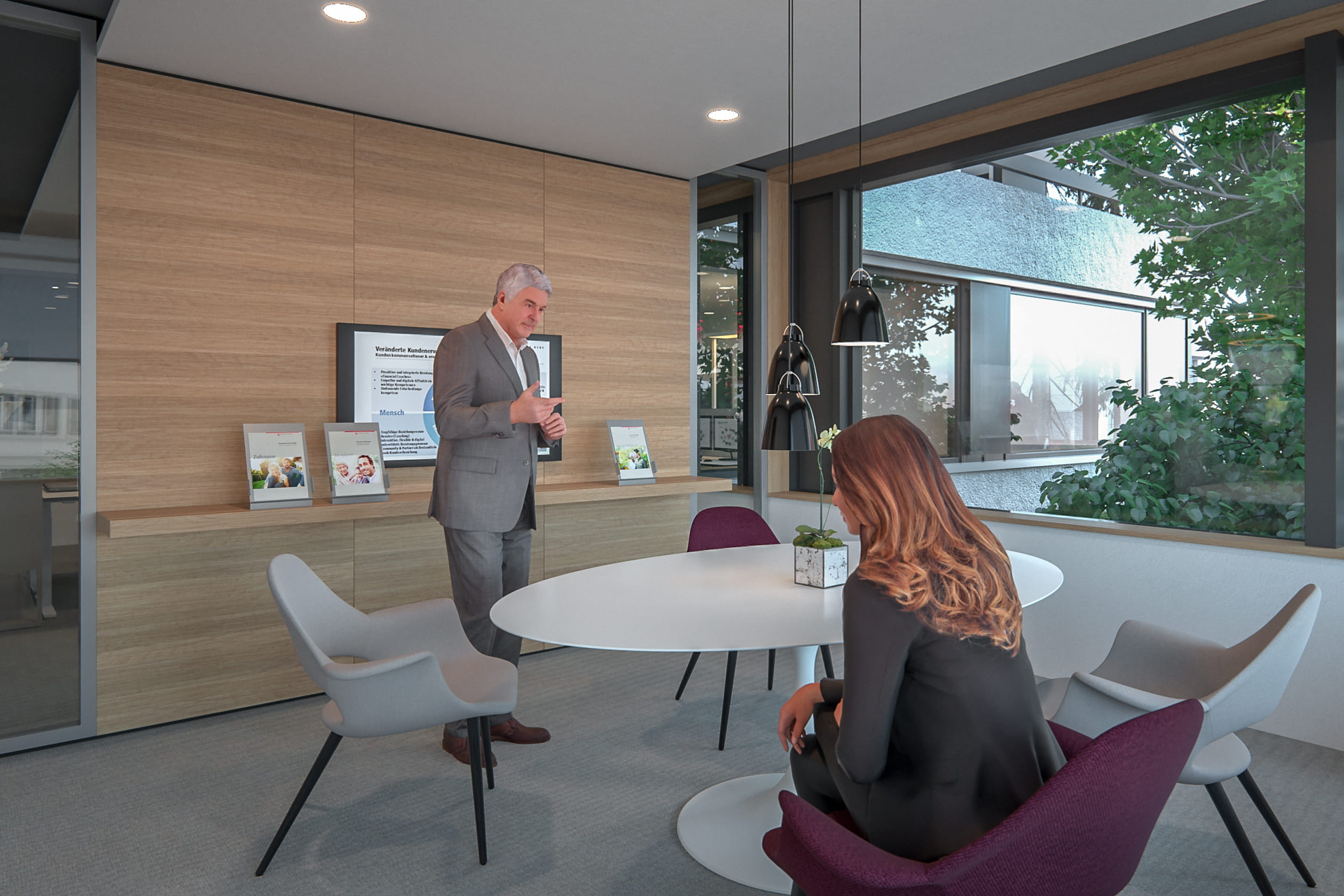 Aujourd’hui déjà, il est possible de bénéficier d’un conseil de 7h à 19h, soit également en dehors des heures d’ouverture du siège. Au nouveau siège de la BCBE, les prestations de conseil seront renforcées et redéfinies : les conseillers auront plus de temps à consacrer aux clients. Ils pourront ainsi conseiller les partenaires de manière complète et individuelle, même au-delà des sujets financiers. « Nous nous concentrons plus sur les situations personnelles de nos clients, explique Kurt Wandfluh. Nous privilégions des relations d’affaires personnelles étroites et y accordons à cette fin beaucoup de temps à nos clients. En effet, nous souhaitons précisément leurs proposer ce dont ils ont besoin et ce qui leur correspond. Grâce à nos formules personnelles, l’utilité de nos offres pour les clients se trouve au cœur de notre attention. » Les clients bénéficieront également de soutien et de conseil sur place pour réaliser leurs opérations bancaires numériques, par exemple pour utiliser l’App BCBE, numériser des bulletins de versement, modifier des ordres permanents ou encore installer TWINT.