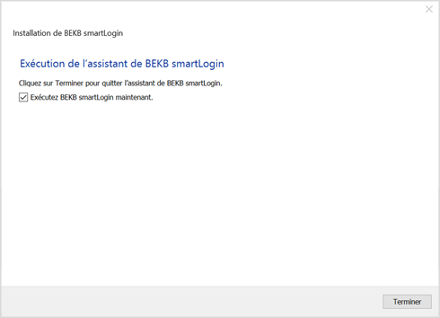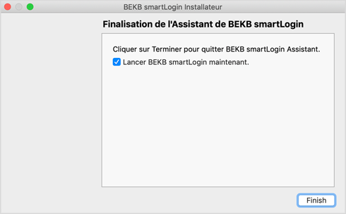 Un simple clic sur «Finish» vous permet de clore l’installation. Dès lors, l’application BCBE smartLogin à jour s’ouvre automatiquement et vous pouvez vous y connecter comme d’habitude. Les contrats déjà enregistrés restent reliés.