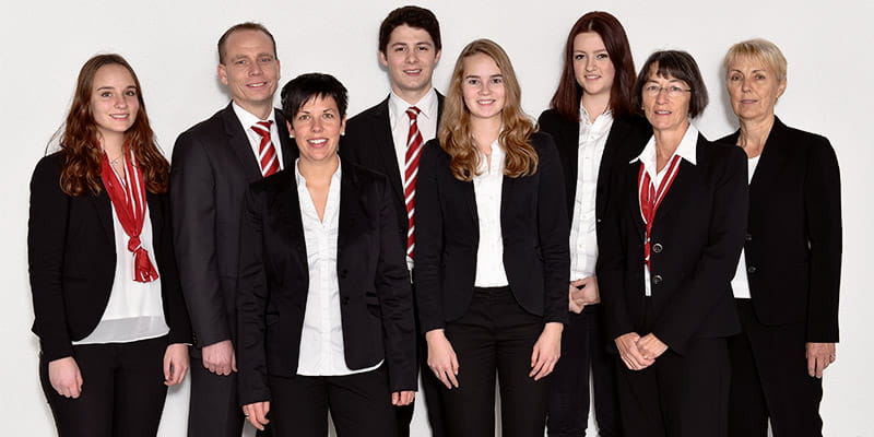 L’équipe du siège de la BCBE de Meiringen (de gauche à droite) : Sibylle Inäbnit, Marc Zumbrunn (responsable du siège), Sabine Gnos, Benjamin Schläppi, Patrizia Michel, Victoria Zwald, Christine Berger (responsable suppléante du siège) et Monika Nägeli.