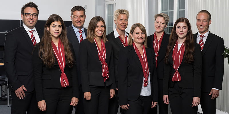 L’équipe de la BCBE Herzogenbuchsee (de gauche à droite) : Pascal Bringold (responsable du siège), Noemi Lanz, Thomas Witschi (responsable de la région Haute-Argovie), Christine Eyer, Nadja Kissling, Claudia Bongini, Martina Voser-Grütter, Rahel Leibundgut et Philipp Scribante