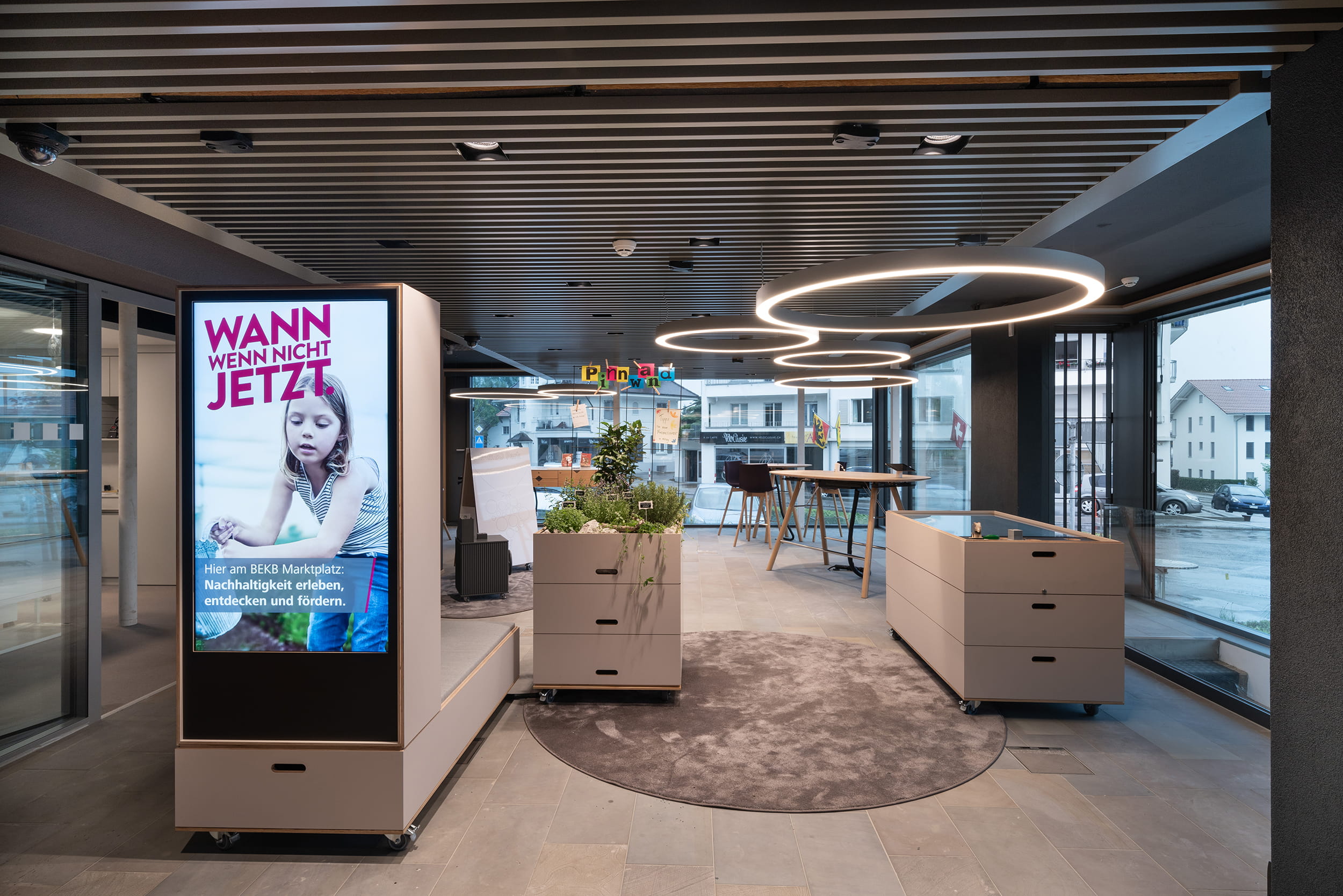 Autre nouveauté : l’atelier im Ankerdorf. L’atelier accueillera des manifestations tels que des séminaires tenus à midi sur divers sujets. « Nous souhaitons ainsi partager nos connaissances avec nos clients et leur offrir des prestations supplémentaires dans notre siège », explique Kurt Wandfluh. Les clients de la BCBE ont ainsi la possibilité de réserver ce local pour la tenue d’évènements tels qu’une réunion d’une association.