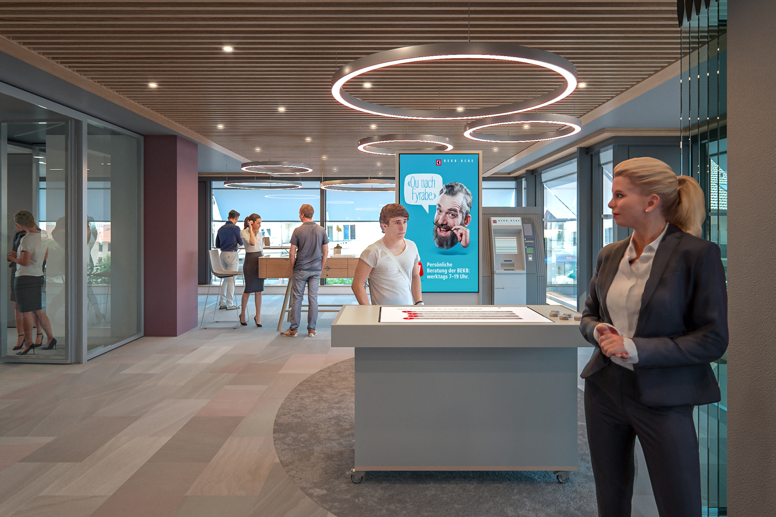 Aujourd’hui déjà, il est possible de bénéficier d’un conseil de 7h à 19h, soit également en dehors des heures d’ouverture du siège. Au nouveau siège de la BCBE, les prestations de conseil seront renforcées et redéfinies : les conseillers auront plus de temps à consacrer aux clients. Ils pourront ainsi conseiller les partenaires de manière complète et individuelle, même au-delà des sujets financiers. « Nous nous concentrons plus sur les situations personnelles de nos clients, explique Kurt Wandfluh. Nous privilégions des relations d’affaires personnelles étroites et y accordons à cette fin beaucoup de temps à nos clients. En effet, nous souhaitons précisément leurs proposer ce dont ils ont besoin et ce qui leur correspond. Grâce à nos formules personnelles, l’utilité de nos offres pour les clients se trouve au cœur de notre attention. » Les clients bénéficieront également de soutien et de conseil sur place pour réaliser leurs opérations bancaires numériques, par exemple pour utiliser l’App BCBE, numériser des bulletins de versement, modifier des ordres permanents ou encore installer TWINT.