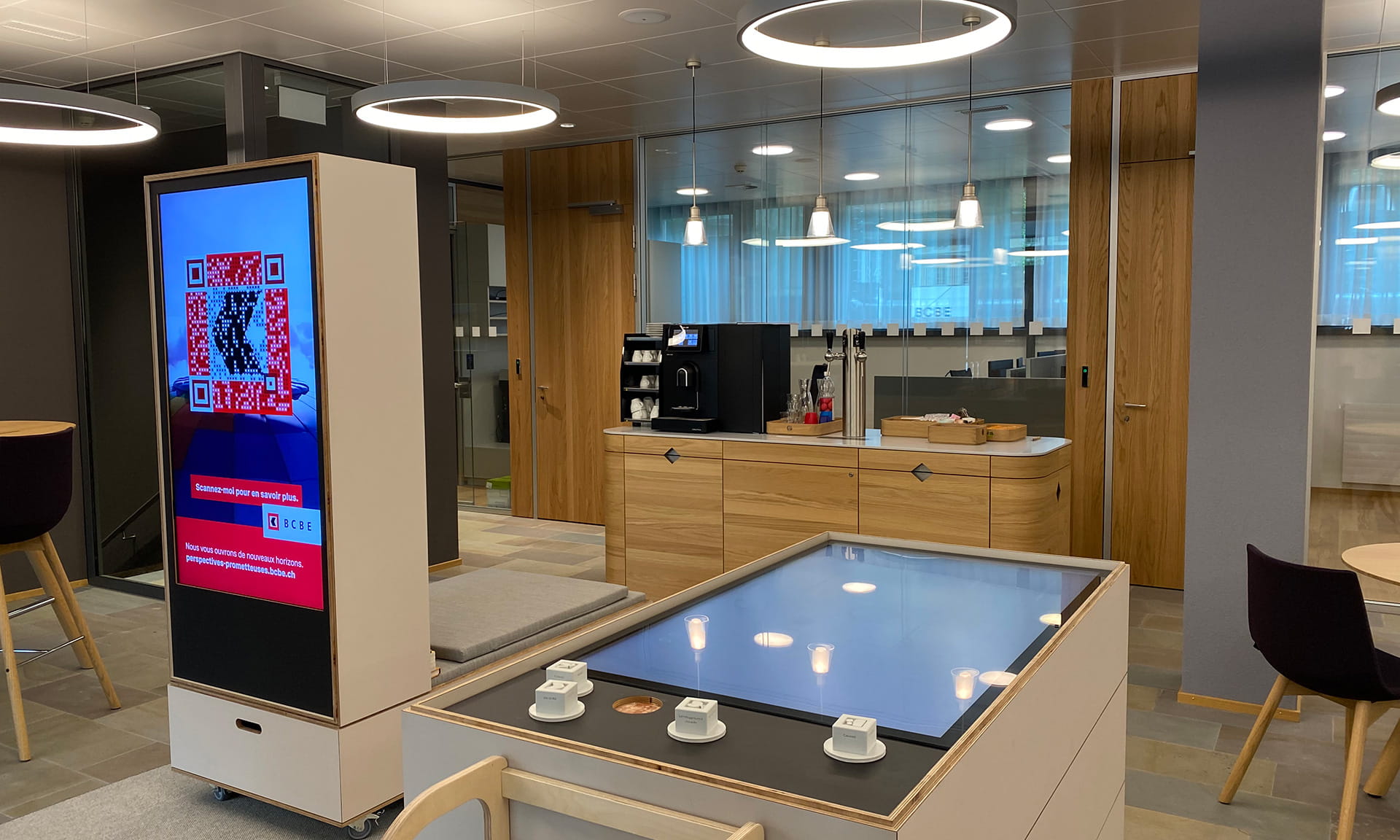 Ces dernières années, l’importance des opérations au guichet n’a cessé de diminuer ; aujourd’hui, les clients souhaitent avant tout recevoir un conseil personnalisé, pouvoir utiliser des outils numériques et avoir la possibilité d’effectuer leurs opérations bancaires de manière autonome et flexible. Cette évolution est prise en compte sur le nouveau site de la BCBE à Saint-Imier. Non seulement le site a déménagé et a été réaménagé, mais il offre aussi bien plus de possibilités. Dans la nouvelle zone en libre-service, accessible 24h/24, un bancomat permet de verser et de retirer des billets en francs suisses et en euros, et également de verser des francs suisses en monnaie. De plus, la zone en libre-service est équipée du portail services permettant aux clients d’accéder directement à l’e-banking de la BCBE au moyen de leur carte Maestro. Il est ainsi possible d’effectuer facilement nombre d’opérations bancaires, telles que le paiement de factures ou l’adaptation d’ordres permanents, à toute heure et dans un environnement sûr. « La nouvelle zone en libre-service répond aux besoins de flexibilité des clients, puisqu’ils ont désormais la possibilité de réaliser une grande partie de leurs opérations quand ils le souhaitent, grâce aux divers appareils. Nous continuerons bien entendu à les aider à régler leurs affaires bancaires », explique Stéphane Schwendimann, responsable de la BCBE de Saint-Imier. En outre, les clients bénéficient d’une assistance sur place pour configurer et utiliser le portail clientèle de la BCBE, l’App BCBE ou TWINT, un mode de paiement à l’aide d’un smartphone, par exemple.