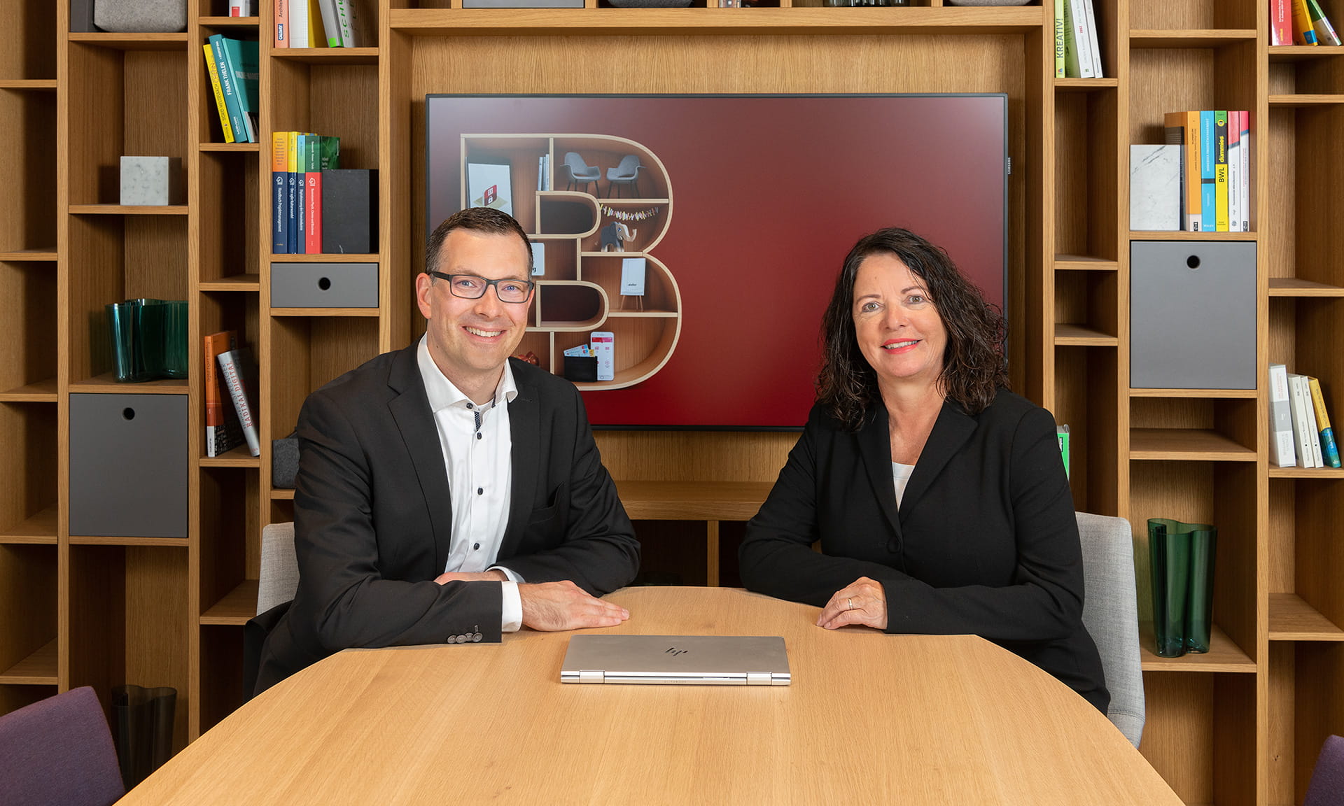 Dominik Sahli (links) wird per 1. Oktober 2021 neuer Leiter der BEKB Lyss und Leiter der Region Lyss. Er folgt auf Verena Probst (rechts), die innerhalb der BEKB neue Aufgaben übernimmt. (Download: Klick aufs Bild)