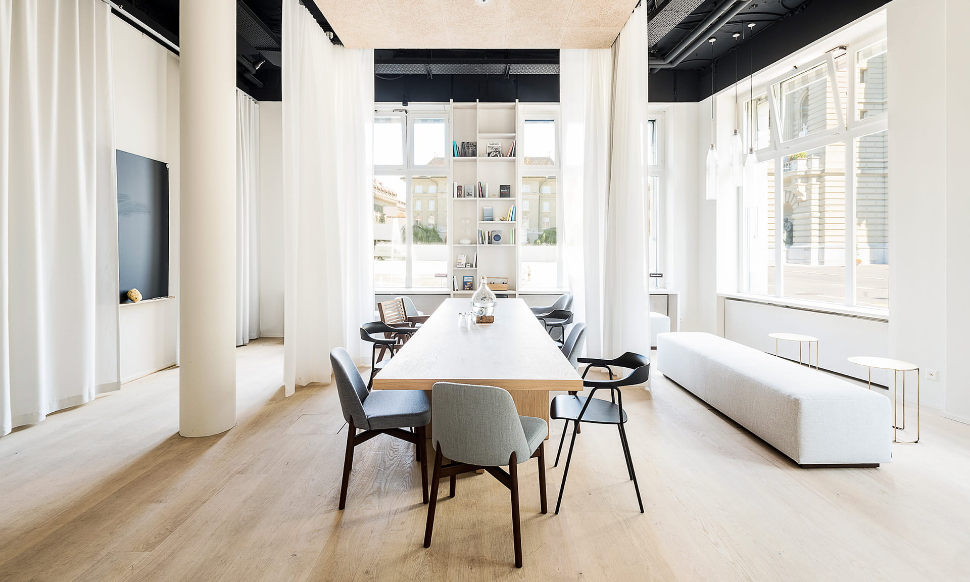 Aufmerksamkeit zieht auch das bereits umgebaute BEKB-Atelier auf sich. Im «atelier am bundesplatz» finden regelmässig Seminare zu verschiedenen Themen statt. Andres Beyeler erklärt: «Damit wollen wir unseren Kundinnen und Kunden unser breites Wissen zugänglich machen und ihnen an unserem Standort einen zusätzlichen Mehrwert bieten. Zusammen mit internen oder externen Expertinnen und Experten bieten wir Anlässe rund ums Thema Geld aber auch solche, die weit über Finanzthemen hinausgehen, an.» Weiter stehen die Räumlichkeiten des «atelier am bundesplatz» Interessierten für Workshops, Besprechungen oder kleinere Vereinsversammlungen zur Verfügung – dies kostenlos.