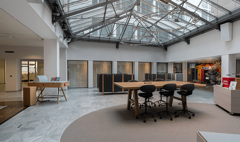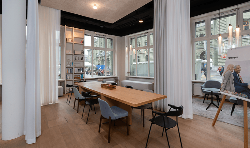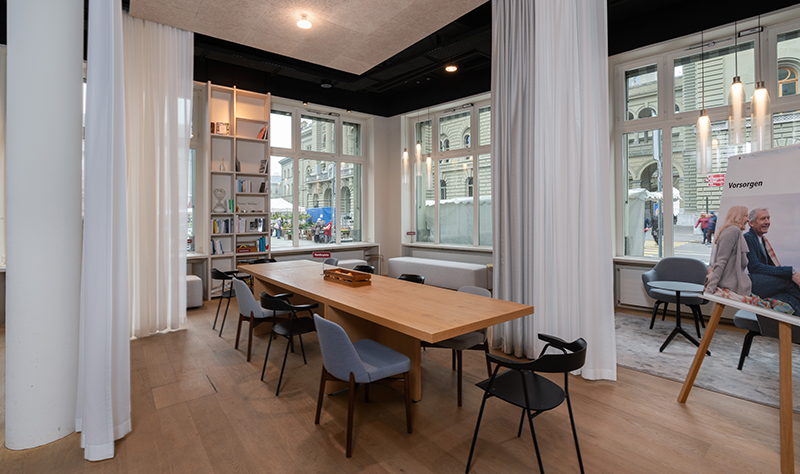 Aufmerksamkeit zieht auch das bereits umgebaute BEKB-Atelier auf sich. Im «atelier am bundesplatz» finden regelmässig Seminare zu verschiedenen Themen statt. Andres Beyeler: «Damit wollen wir unseren Kundinnen und Kunden unser breites Wissen zugänglich machen und ihnen an unserem Standort einen zusätzlichen Mehrwert bieten. Gemeinsam mit Expertinnen und Experten bieten wir Anlässe rund ums Thema Geld aber auch solche, die weit über Finanzthemen hinausgehen.» Weiter stehen die Räumlichkeiten des «atelier am bundesplatz» Interessierten für Workshops, Besprechungen oder kleinere Vereinsversammlungen zur Verfügung – dies kostenlos.