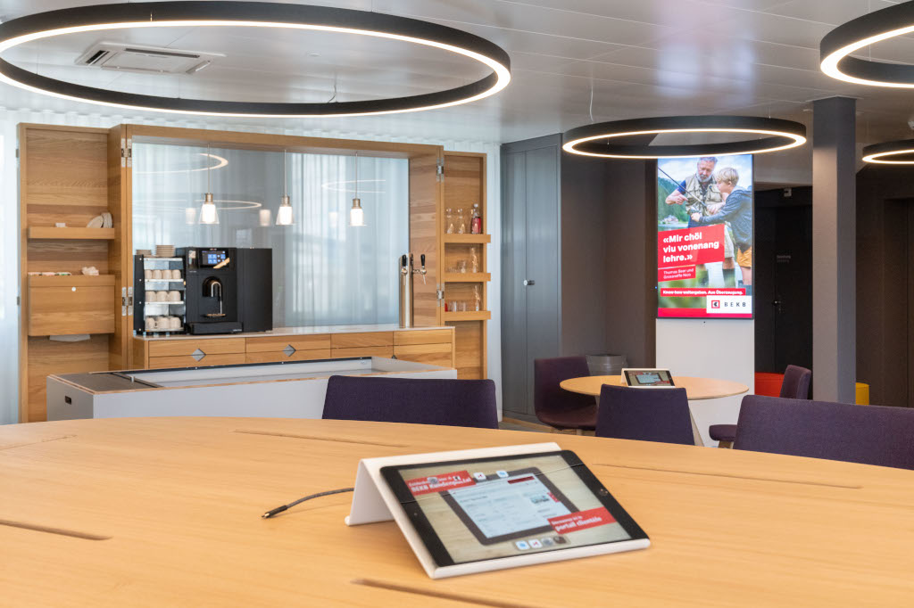 Aufmerksamkeit zieht auch das BEKB-Atelier auf sich. Im «atelier am dorfplatz» finden regelmässig Seminare zu verschiedenen Themen statt. Patrick Felder: «Damit wollen wir unseren Kundinnen und Kunden unser breites Wissen zugänglich machen und ihnen an unserem Standort einen zusätzlichen Mehrwert bieten. Gemeinsam mit Expertinnen und Experten bieten wir Anlässe rund ums Thema Geld aber auch solche, die weit über Finanzthemen hinausgehen». Weiter stehen die Räumlichkeiten des «atelier am dorfplatz» Interessierten für Workshops, Besprechungen oder kleinere Vereinsversammlungen zur Verfügung – dies kostenlos und ausserhalb der Öffnungszeiten.