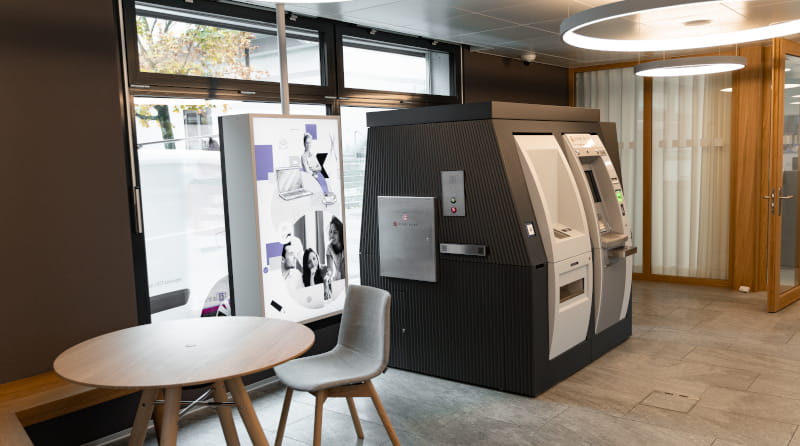 Der Standort sieht nicht nur neu aus – er funktioniert auch anders als bisher und bietet viele neue Möglichkeiten. In der neuen Selbstbedienungszone steht für Ein- und Auszahlungen von Noten in Schweizer Franken und in Euro sowie für die Einzahlung von Münz in Schweizer Franken ein Automat zur Verfügung. Zudem ist die Zone mit dem BEKB-Serviceportal ausgestattet, worüber die Kundinnen und Kunden mit ihrer Debitkarte direkt aufs BEKB Kundenportal, der E-Banking-Lösung der BEKB, zugreifen können. Viele Bankgeschäfte, wie beispielsweise die Bezahlung von Rechnungen oder die Anpassung von Daueraufträgen, können so zeitunabhängig, einfach und in sicherer Umgebung erledigt werden. «In der Selbstbedienungszone sind die Kundinnen und Kunden flexibler und können dank dem erweiterten Automatenangebot eine grosse Anzahl Dienstleistungen dann erledigen, wenn sie Zeit haben. Selbstverständlich unterstützen wir die Kundinnen und Kunden weiterhin bei der Erledigung ihrer Bankgeschäfte», sagt Roger Schenk, Leiter der BEKB Uetendorf. Ausserdem erhalten die Kundinnen und Kunden vor Ort Unterstützung im Umgang mit digitalen Banklösungen, zum Beispiel bei der Nutzung und Einrichtung des BEKB-Kundenportals, der BEKB-App oder von TWINT.