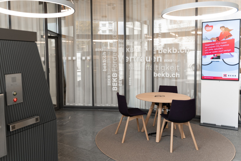 Der Standort sieht nicht nur neu aus – er funktioniert auch anders als bisher und bietet viele neue Möglichkeiten. In der neuen Selbstbedienungszone steht für Ein- und Auszahlungen von Noten in Schweizer Franken und in Euro sowie für die Einzahlung von Münz in Schweizer Franken ein Automat zur Verfügung. Zudem ist die Zone mit dem BEKB-Serviceportal ausgestattet, worüber die Kundinnen und Kunden mit ihrer Debitkarte direkt aufs BEKB Kundenportal, der E-Banking-Lösung der BEKB, zugreifen können. Viele Bankgeschäfte, wie beispielsweise die Bezahlung von Rechnungen oder die Anpassung von Daueraufträgen, können so zeitunabhängig, einfach und in sicherer Umgebung erledigt werden. «In der Selbstbedienungszone sind die Kundinnen und Kunden flexibler und können dank dem erweiterten Automatenangebot eine grosse Anzahl Dienstleistungen dann erledigen, wenn sie Zeit haben. Selbstverständlich unterstützen wir die Kundinnen und Kunden weiterhin bei der Erledigung ihrer Bankgeschäfte», sagt Miguel Ramallo Lopez, Leiter der BEKB Muri. Ausserdem erhalten die Kundinnen und Kunden vor Ort Unterstützung im Umgang mit digitalen Banklösungen, zum Beispiel bei der Nutzung und Einrichtung des BEKB-Kundenportals, der BEKB-App oder von TWINT.