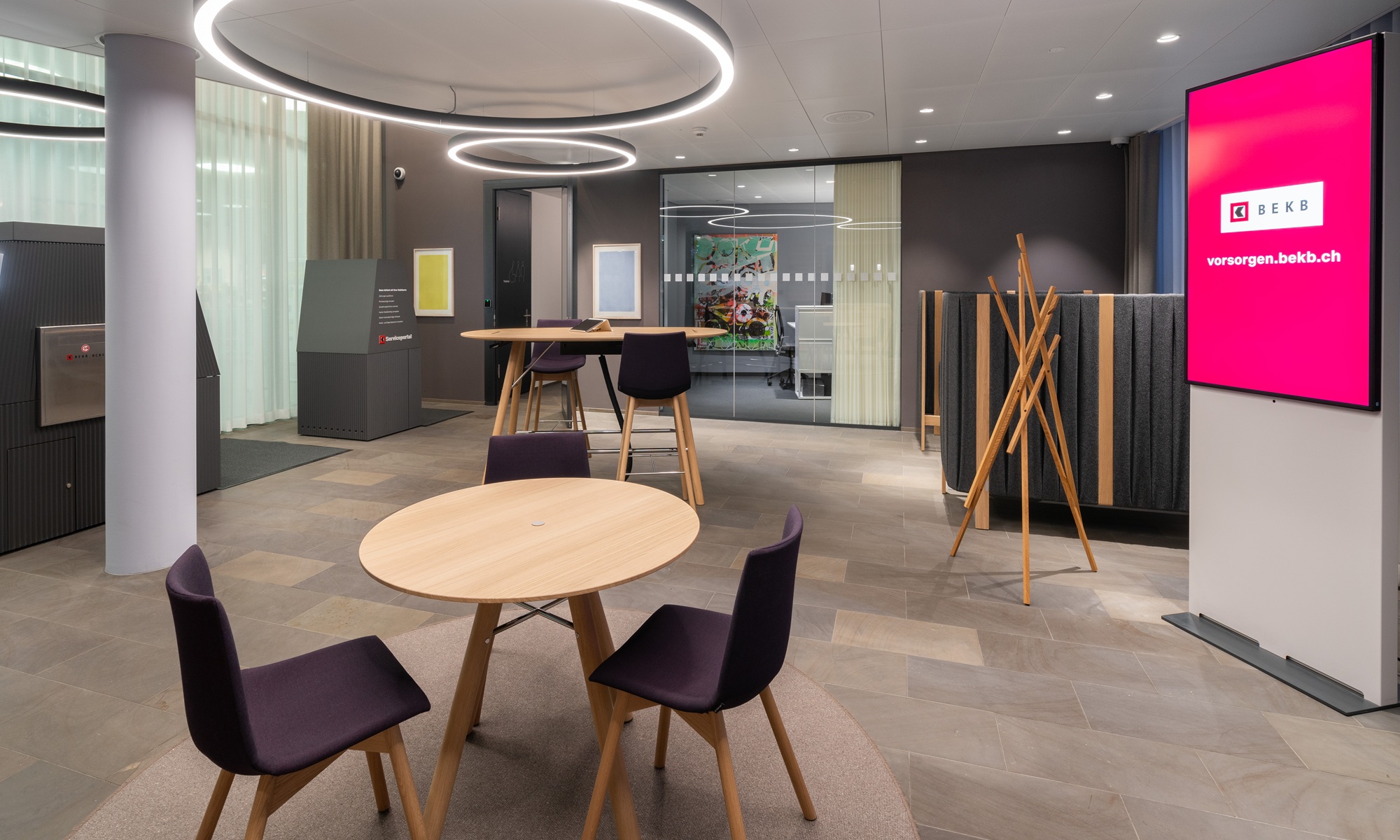 Der Standort bietet heute eine Selbstbedienungszone für Ein- und Auszahlungen, ein Serviceportal mit direktem Zugang zum E-Banking sowie moderne Beratungsräume.