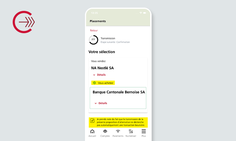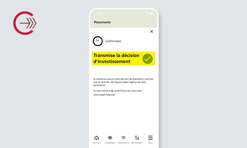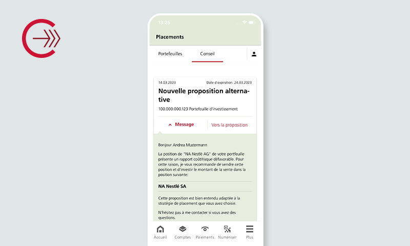 Les clients disposant d'un dépôt avec conseil peuvent en outre recevoir des propositions d'investissement personnelles de leur coach financier, qui peuvent être transmises et conclues facilement et rapidement.